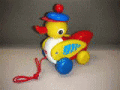 ひもを引くとカタカタと音をたてながら、首と羽を振って動きます。