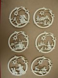ドイツ・Waldfabrikの木製オーナメント。 教会、サンタクロース、スノーマン等の6点セットです。直径約4cm。