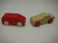 乗用車は白木のボディに赤の車輪。 バンは赤いボディに白木の車輪。