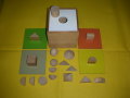 穴落とし遊びをしながら、形の関係性を発見できる童具です。
