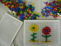 色とりどりのステッキを穴に差し込んで、絵や模様を造るおもちゃです。