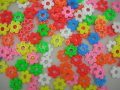 花はじきは砂や水などの代わりとして遊ぶことが出来ます。 砂や水などの自然物はとっても多様な遊びを引き出してくれますが、室内では使いにくいですよね。 その代わりとして花はじきは色々な遊びに活躍します。 小さなお子さんは誤飲にご注意ください。お口に入れてしまう頃は、長くつなぐことができるチェーンリングをおすすめします。 直径約18㎜。200g。ビニール袋入り。プラスチック製。日本・ホームラントーイ社製造。