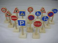 木製の交通標識です。「駐車禁止」や「横断歩道有り」など、街でおなじみの標識のミニチュアは、車のおもちゃで遊ぶ時、遊びのバリエーションを広げてくれます。