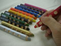 軽く描けば色鉛筆。強く描けばクレヨン。描いた後で、水を付けた筆でなぞると水彩画のようににじみます。
