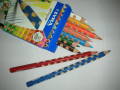 水玉模様に削られたグルーヴ色鉛筆と、水彩用色鉛筆トリプルワンが合体しました。