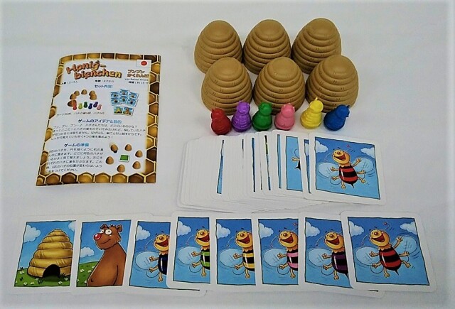 内容物:カード 36枚、ハチの巣 6個、ハチ 6匹。対象年齢:4歳位~、プレイ人数:2~5人。アミーゴ社製(ドイツ)