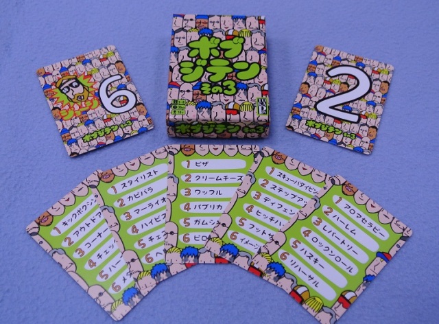 カードに書かれている6つの言葉の内、今回の「お題」となるのは、一番上のカードを取ったことで山札の一番上に見えているカード(裏面)に描かれている番号の言葉になります。