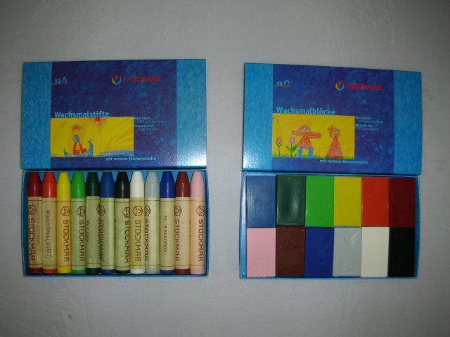 ドイツ・シュトックマー社のミツロウクレヨンには、スティックタイプとブロックタイプがあります。