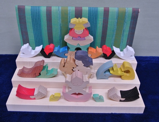 小黒三郎作のシンプルな組み木のおひなさま。
